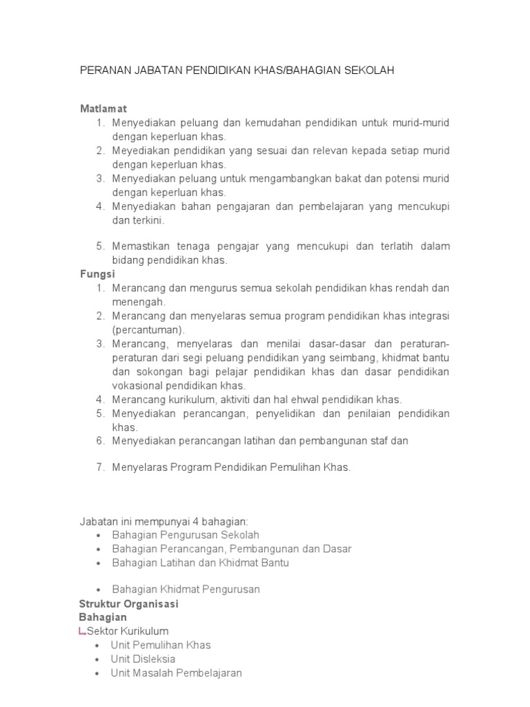 Klik Untuk Maklumat Lanjut. Kolaborasi semua staf sekolah kepada program pendidikan khas penting untuk merealisikan aspirasi pendidikan khas. The Jabatan Pendidikian Khas Department at Ipda on Academiaedu.