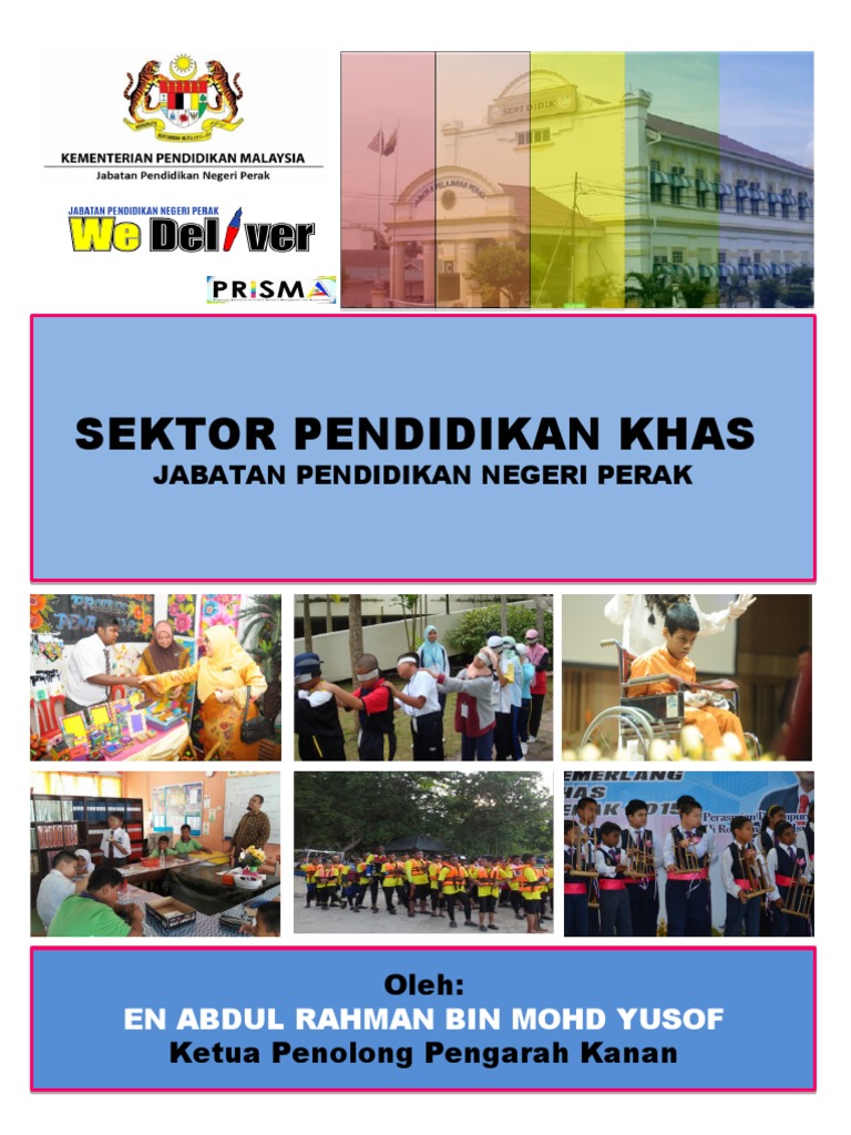 Bahagian Pendidikan KhasBP Khas Kementerian Pendidikan Malaysia Aras 2 Blok E2 Pusat Pentadbiran Kerajaan Persekutuan 62604 Putrajaya. Program Pendidikan Khas Integrasi. Sektor Pendidikan Khas Jabatan Pendidikan Negeri Perak dengan kerjasama Universiti Pendidikan Sultan Idris UPSI Pejabat Pendidikan Daerah Jabatan.